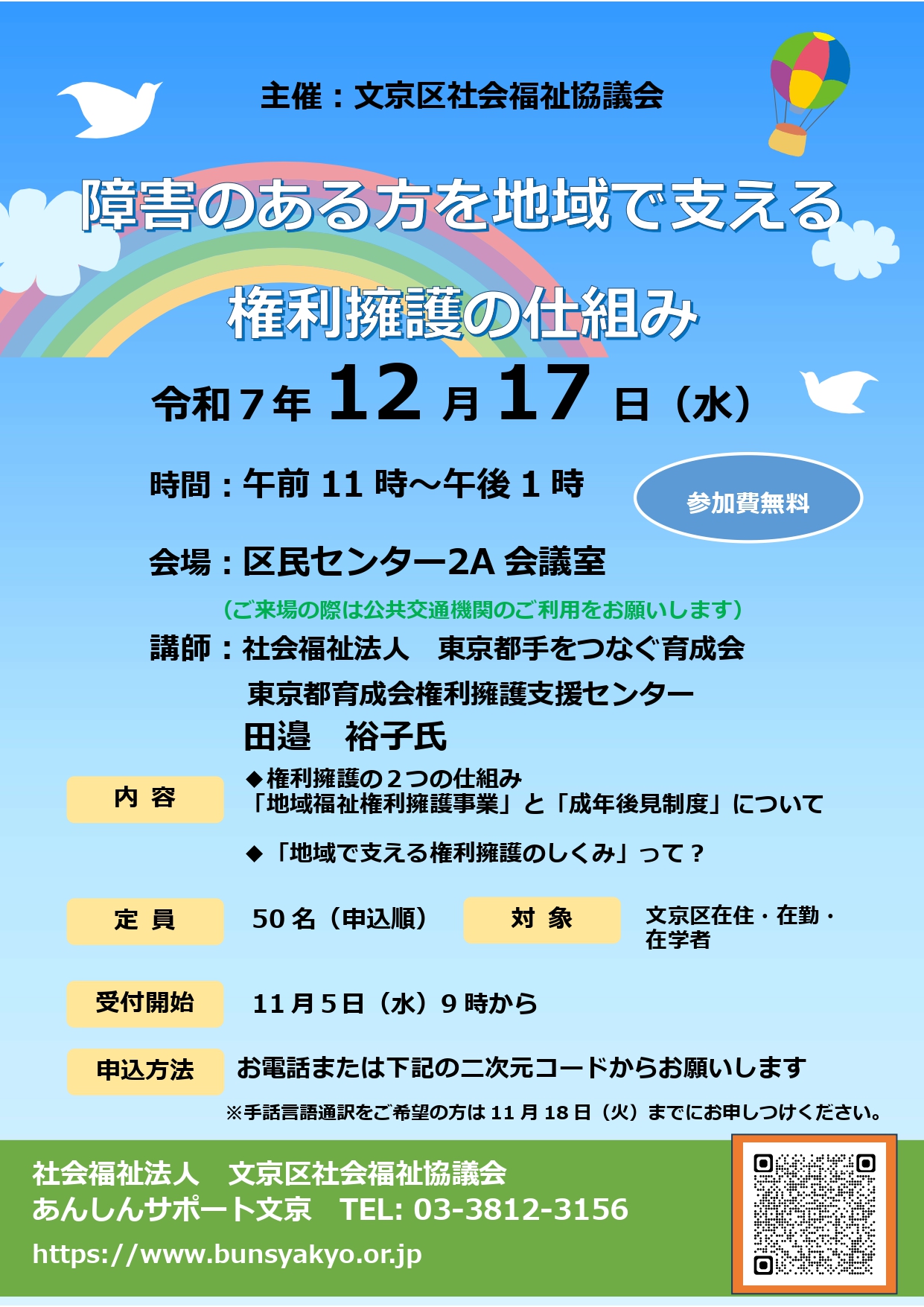 受付:令和7年11月5日(水)9時から お電話(03-3812-3156) または