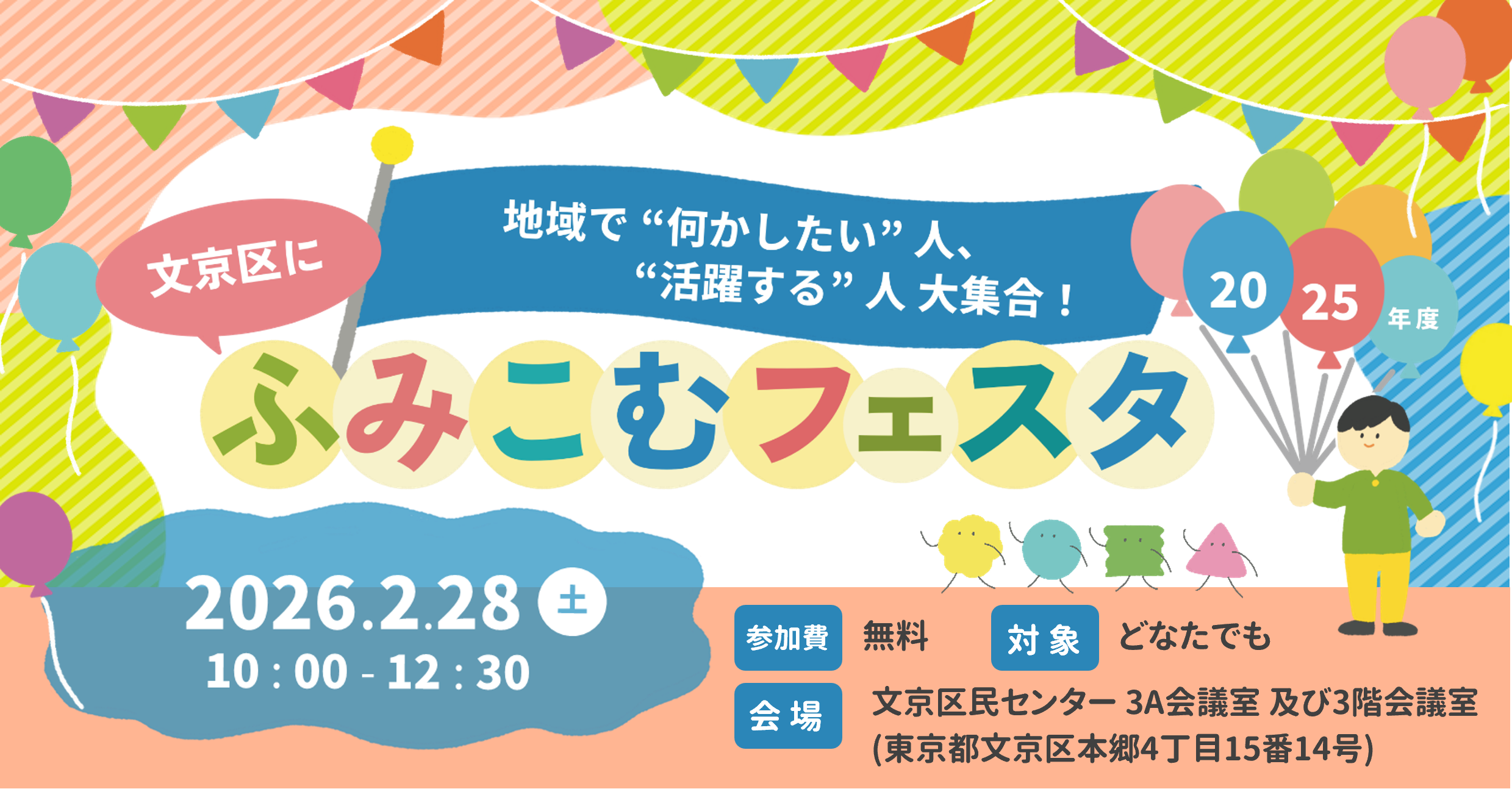 文京区にふみこむフェスタは、区内で活動する様々な団体や企業が集まり、区内で行う非営利活動についてPRを行う場です!